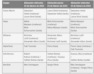 Por el lado de Williams, el equipo de Grove eligió a Nicholas Latifi por sobre el recién llegado Alexander Albon para iniciar las pruebas el miércoles. El jueves será el anglo-tailandés el que conducirá por la mañana y el viernes será nuevamente el canadiense el que abrirá la jornada.